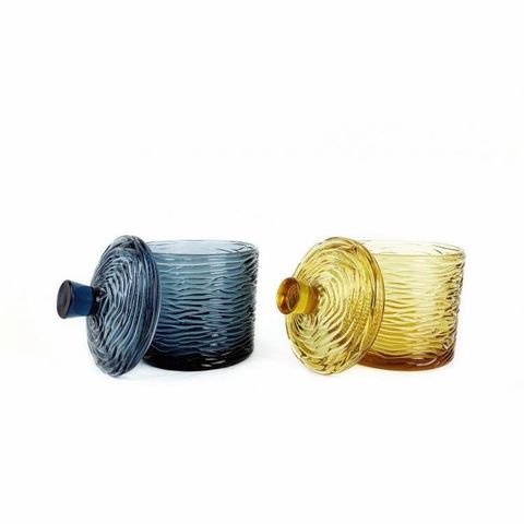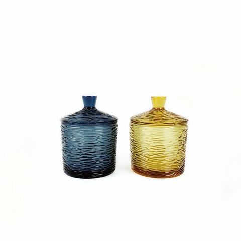 Transparent colored glass candy storage jar, DIY candle glass vessel.