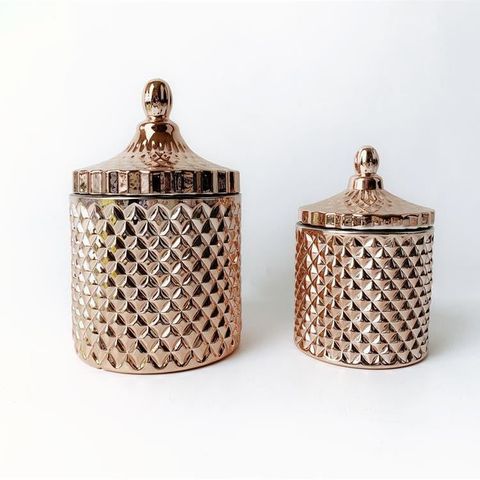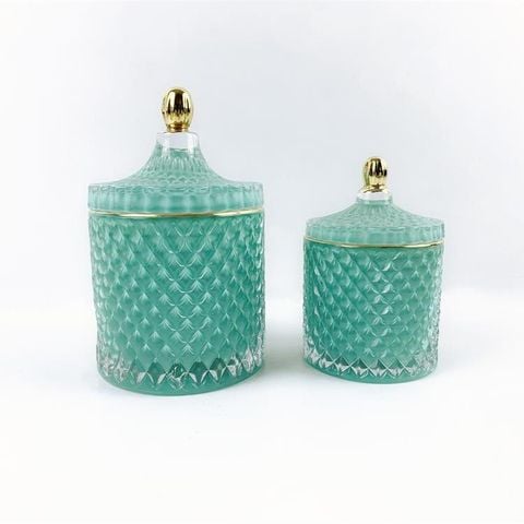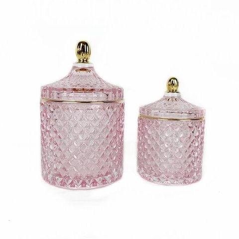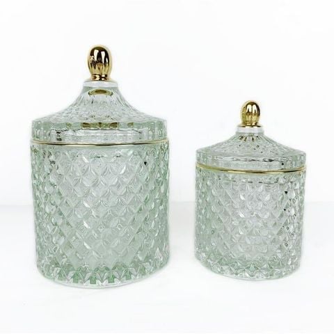 Geo Cut Cylinder Glass Candle Jar With Lid