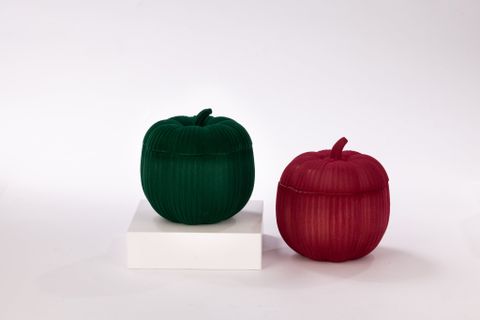 Pumpkin - Shaped Glass Candle Jar In Velvet Surface