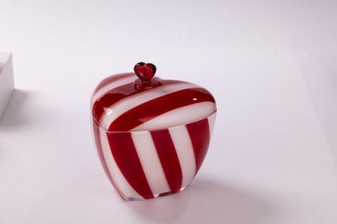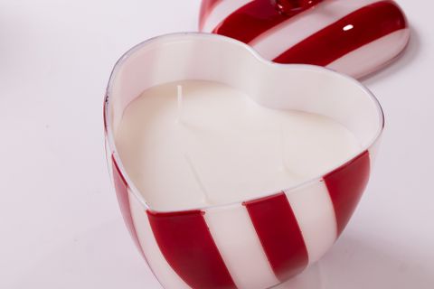 Heart Shaped Glass Candle Jar With Red Stripe