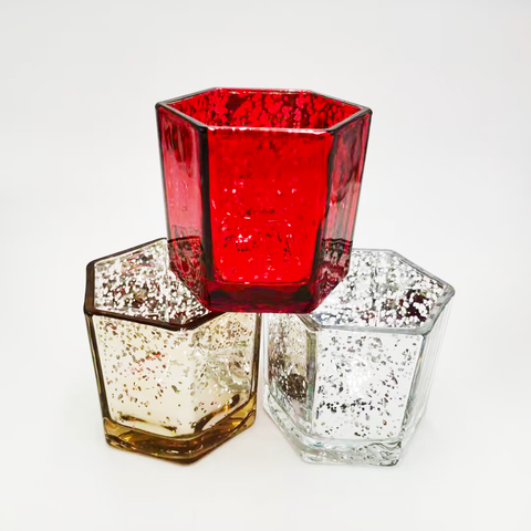 Hexagon-Shaped Glass Candle Jar With Electroplating Decor