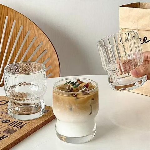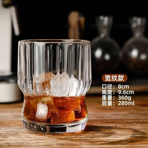 Wide Stripe Glass Cup – Inner Vertical Texture, Smooth Exterior, Custom Logo Ready